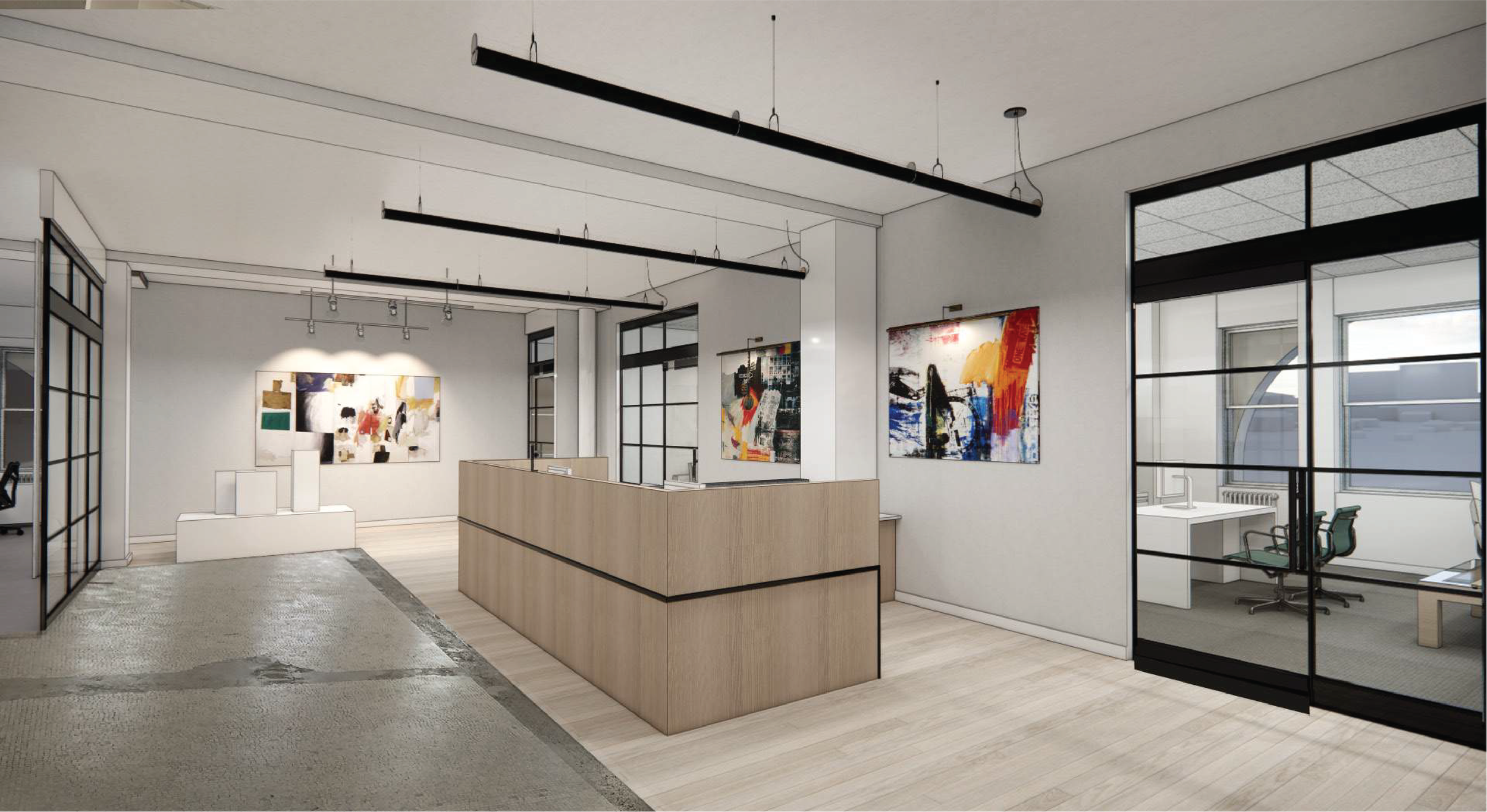 Strategy to support HQ selection, lease negotitation, work letter development, overall project management of full floor fit-out including design, construction & FFE oversight.